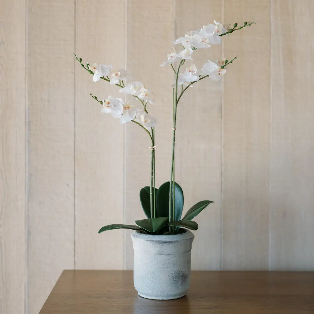 Bring a touch of natural elegance to your home with our lifelike 24" faux Phalaenopsis orchid, featuring two split stems in a timeless white hue. Designed to capture the delicate beauty and intricate details of real Phalaenopsis blooms, this piece adds a sense of quiet sophistication to any space.