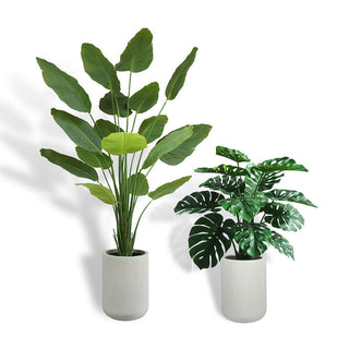 Bring the lush beauty of the tropics indoors with the CG Hunter 8' Bird of Paradise and the 4' Monstera Plant, elegantly housed in contemporary gray planters. These lifelike artificial plants feature hand-painted trunks and lifelike leaves, designed to look remarkably realistic, adding a touch of greenery to any space without the hassle of upkeep.