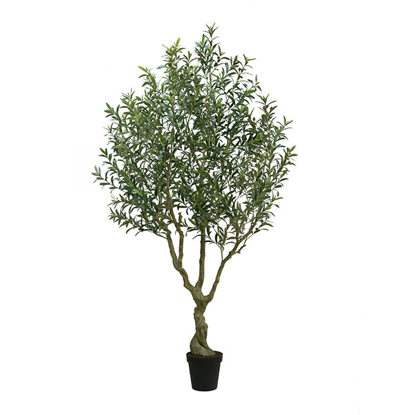 Transform rooms with our lifelike 8′ olive tree: natural-looking wood trunk, leaf varieties, hand-tied fruit clusters—Mediterranean luxury, zero maintenance.