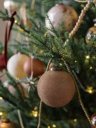 Add a touch of artistry to your holiday decor with our Handcrafted Mouthblown Glass Ornament. Featuring a 4-inch diameter set of 4, bronze antique topper, and natural jute hanger, this ornament in cinnamon with Gold accents brings a unique, handcrafted charm to your festive celebrations. Imported to make your holidays truly special.