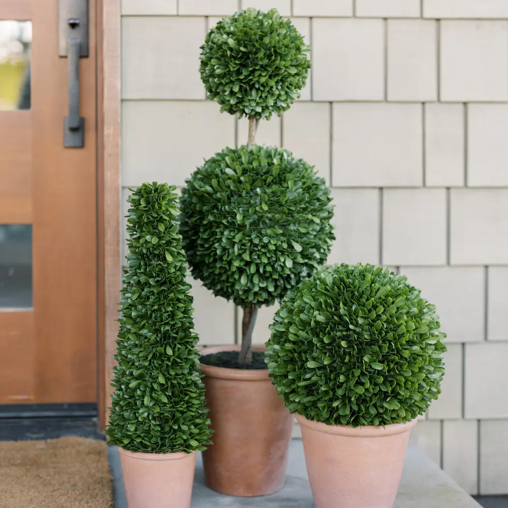 Completely maintenance-free, this artificial boxwood topiary requires no watering, trimming, or seasonal care—remaining perfectly shaped year-round. It’s an ideal solution for design-forward spaces that value consistency, polish, and ease.