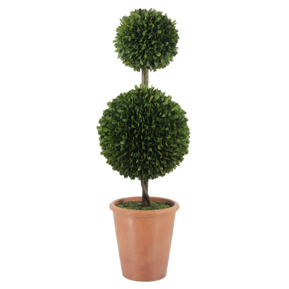 Elegant and enduring, this double boxwood topiary delivers structure and symmetry with effortless sophistication—an essential finishing touch for thoughtfully designed interiors.
