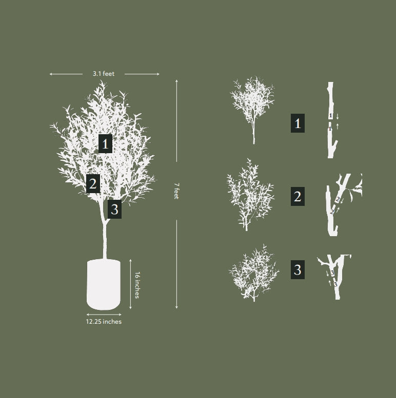 The 7-foot stature of the Artificial Olive Tree commands attention and adds a vertical dimension to your decor. Whether nestled in a corner or proudly displayed in an open space, its presence radiates elegance and sophistication. The Artisan Mediterranean Pot enhances this effect, elevating the overall visual appeal.